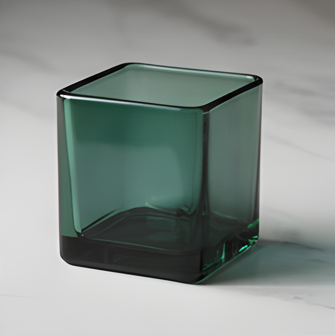 Machine-made square candle jar is crafted from premium molded glass, offering sharp edges, uniform wall thickness, and precise symmetry. It can be customized with spray-painted finishes in various colors, allowing versatile branding and design adaptability. Ideal for modern container candles, its clean geometric form enhances contemporary décor while providing stable and efficient wax burning performance.